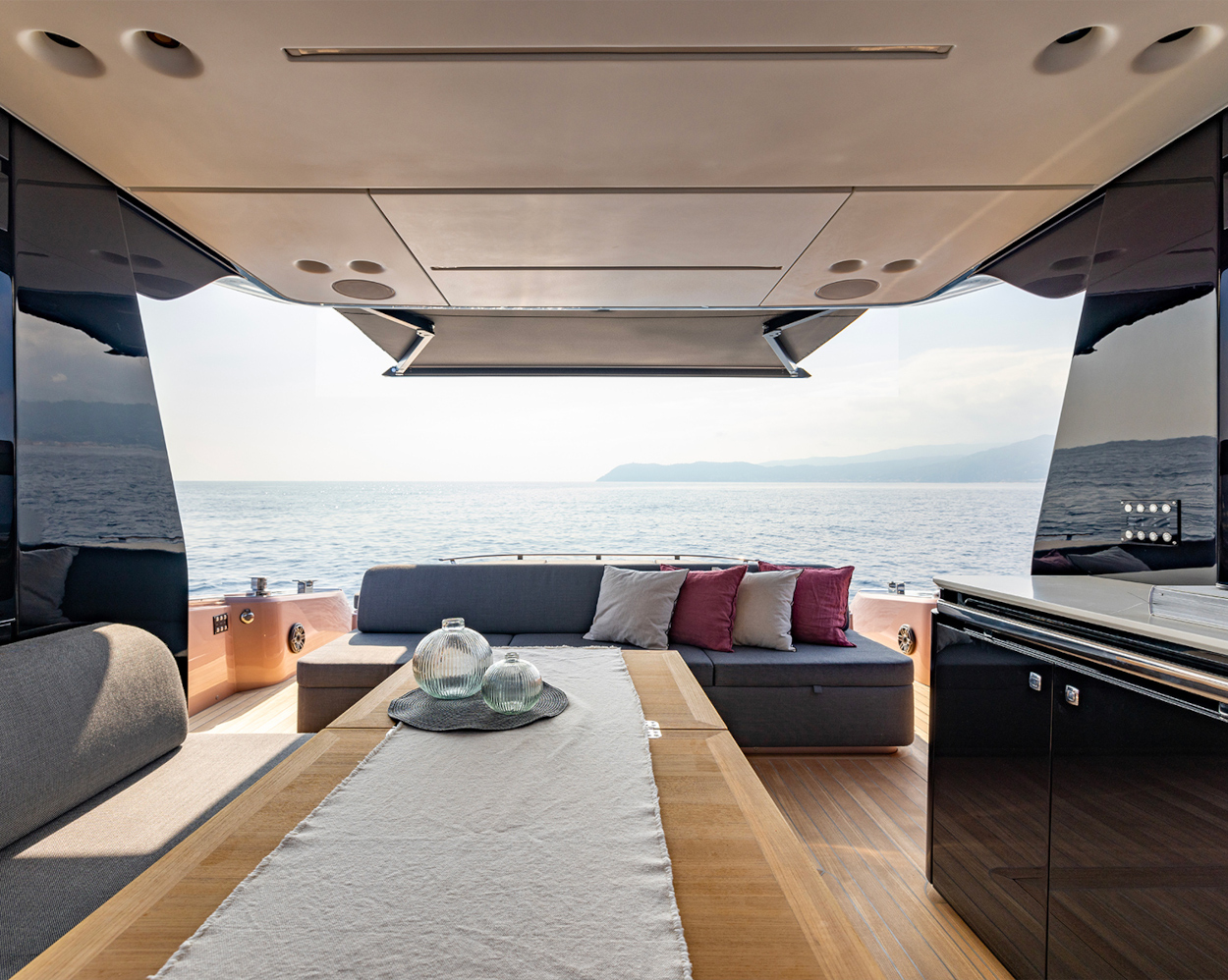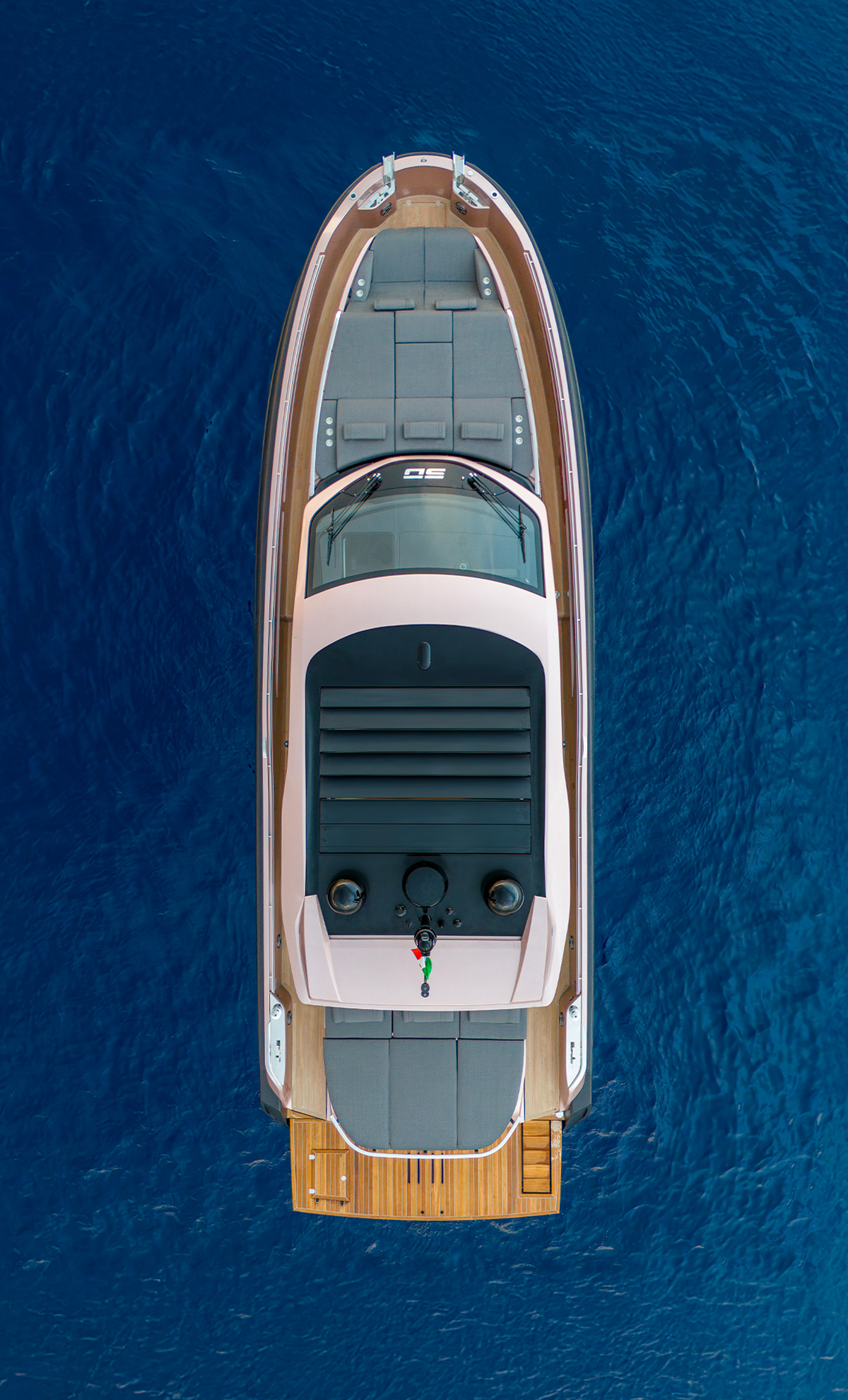 - Piattaforma di poppa rivestita in teak massello
